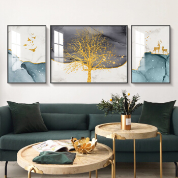 久しぶりに現代の簡単で贅沢な客間を見て、抽象的な壁画を描いて、三連の絵を描いて、金鹿瓊林(アルミニウムの相当する金属の枠+有機的なガラス)の左右の40*60の中間の80*60を掛けます。