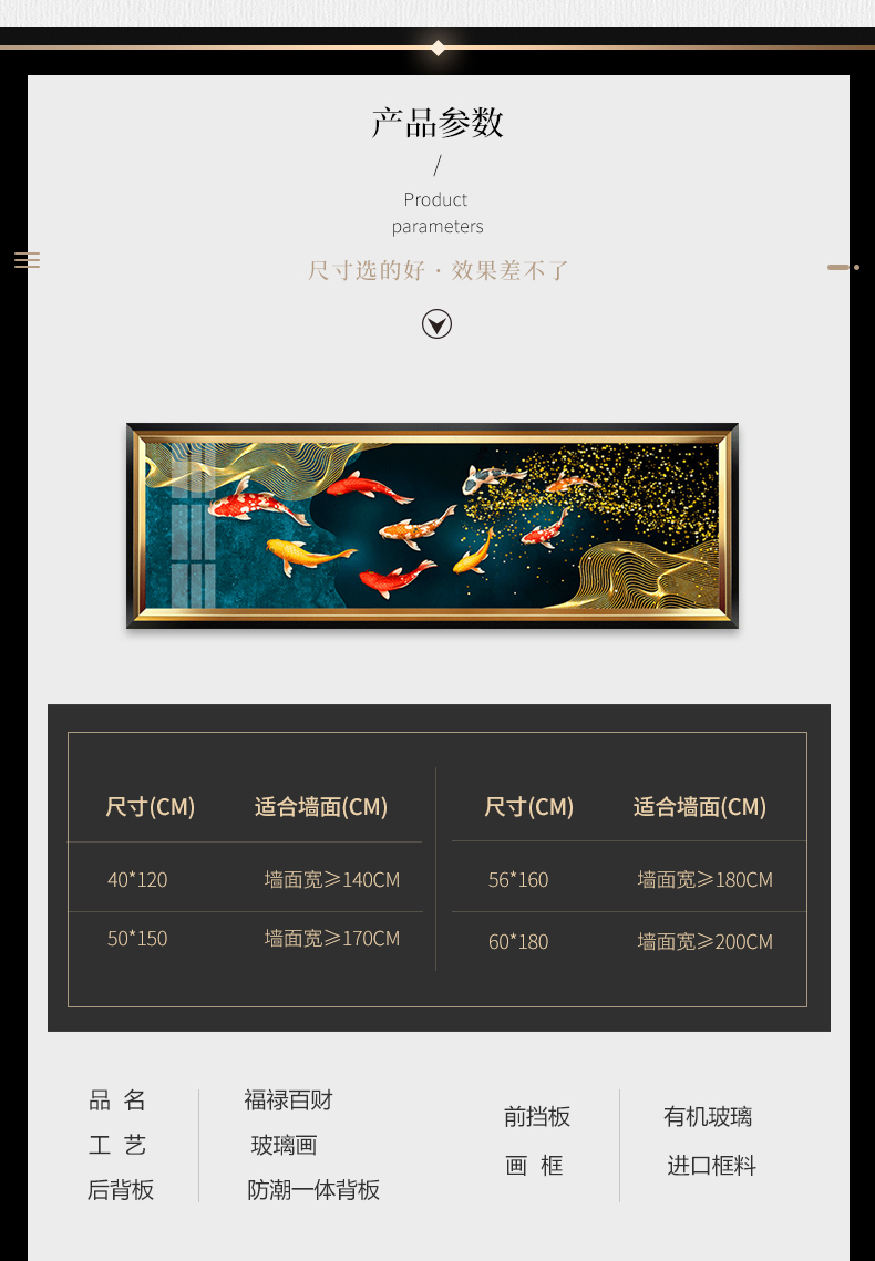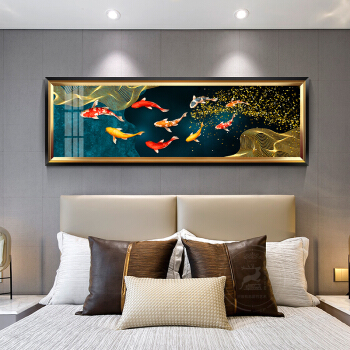 | 商品名称 | 良木の寝室装飾画の主な寝床の上に、軽くて豪華な九魚図のリビングルームの壁画暖かい欧風ロマンチックルームの一幅B-9魚の集財40*120 cmガラスの絵-輸入バラの金枠 |