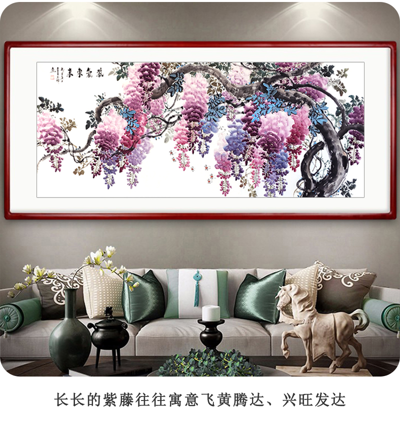| 商品名称 | 紫気東来国画客間書画紫藤水墨画中国式装飾画招財吊るし絵付き額縁の看板事務室芸術画横断幕はすでに紫気東来画枠205*83*cmを表装しました。 |