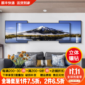 泉湘閣客間装飾画現代単純壁画北欧風ソファーの背景壁装飾画、手作り立体的な押し掛け石、軽奢な磁器画の背に山を重ねて創造的な絵を描き、金山1項(120*34+2個の40*40総長1.6メートル)の水晶磁器画があります。