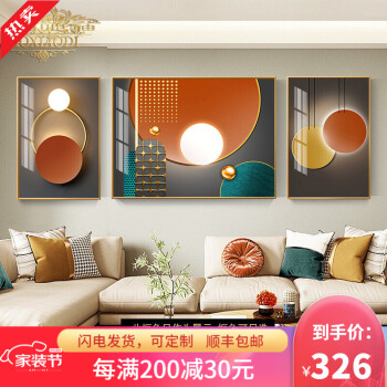 轻奢现代单纯大气ソファー背景壁装饰画个性抽象客间壁画三连吊し絵A中间70*50+左右35*50【适合2.0 mソファー】