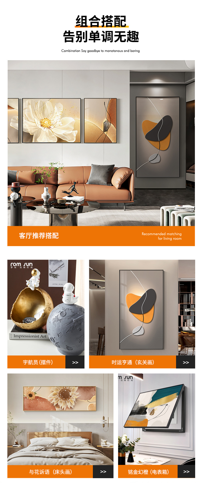 罗尚 現代轻奢客厅装飾画时来运转沙发背景墙壁吊るし絵単純诧寂风レストラン壁画 花开时运(三連)C【有机玻璃】 左右45*60中间60*80 摩登黑【图片 价格 品牌 报价】-